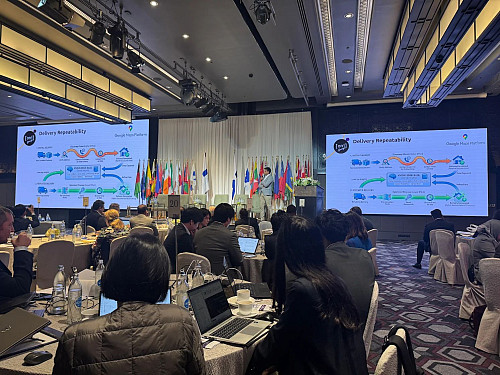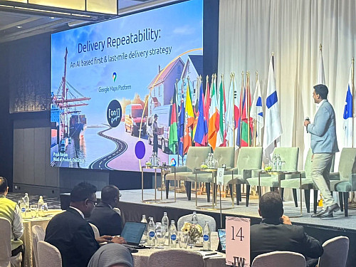 On stage, Prash Ranjan presented together with Anjusha Sandeep from Google Maps Platform, diving into delivery repeatability and showing how better data and stronger operational visibility can help postal & delivery organisations build reliability and customer trust at scale.